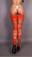 Чулки красные в мелкую сеточку с рисунком сзади